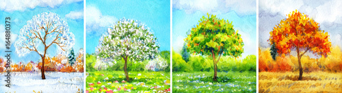 Obraz premium Watercolor landscape of series "Tree in different seasons"