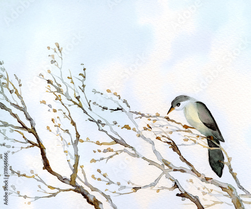 © Marina, Fototapeta premium Watercolor landscape. Old bare tree