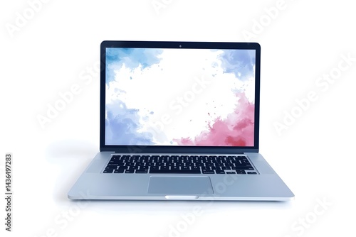 Fototapeta premium Watercolor laptop, sleek computer design, isolated white background