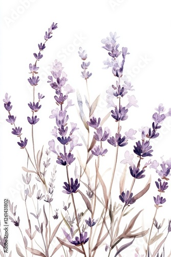 © Jelena, Fototapeta premium Watercolor Lavender and Wildflower Bouquets for Botanic Wallpaper
