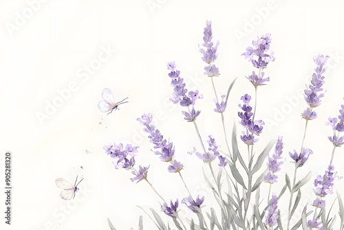 © Oksana_Latysheva, Naklejka premium Watercolor lavender blossom border flowers, white background