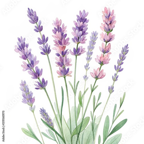 Naklejka premium Watercolor Lavender Bouquet Soft Purple and Pink Floral Art, Lavender , Flower Art