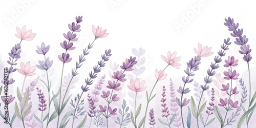 © LA Stock Vision, Naklejka premium Watercolor Lavender Floral Border, Botanical Illustration, Purple Flowers Lavender, Floral Design