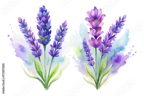 Fototapeta premium Watercolor Lavender Flowers with Stem Hand Painted vector illustration
