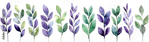 Fototapeta premium Watercolor Lavender Leaves Set on Serene White Background