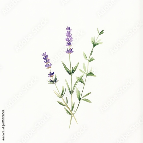 © vanzerim, Naklejka premium Watercolor lavender, rosemary bouquet, white background, botanical illustration, design element