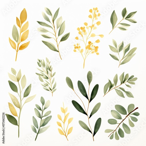 © Shades3d, Fototapeta premium Watercolor Leaf Illustrations.