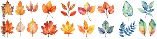 © Png - Video - Photo, Fototapeta premium Watercolor leaves and branches, fall leaves illustration transparent background, PNG ,Generative AI