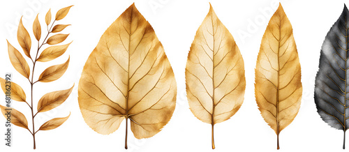 Obraz premium Watercolor Leaves Gold Painting Background Illustration Postcard Digital...
