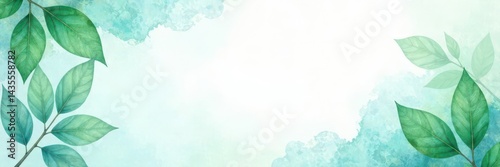 © somsak, Fototapeta premium Watercolor leaves, green blue wash, wedding stationery, floral, summer, rsvp