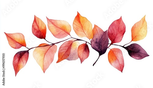 Fototapeta premium Watercolor leaves in fall colors, warm earthy tones, flat design illustration