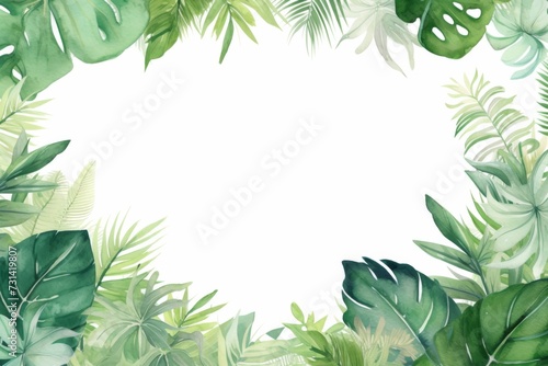 © wanna, Naklejka premium watercolor leaves tropical border design