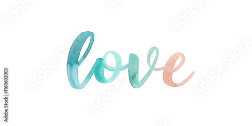 Fototapeta premium Watercolor lettering, artistic design, love theme, soft colors, romantic decor, creative expression, modern style.