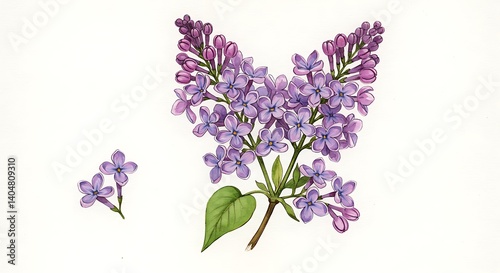 © Thuy, Naklejka premium Watercolor Lilacs: A Delicate Botanical Study AI Generated