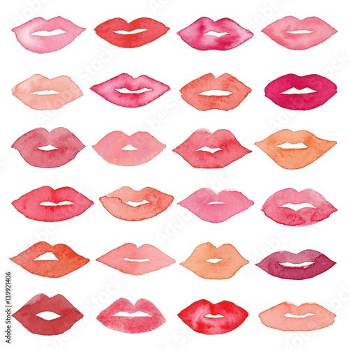 © gala.draw, Fototapeta premium Watercolor lips icon set