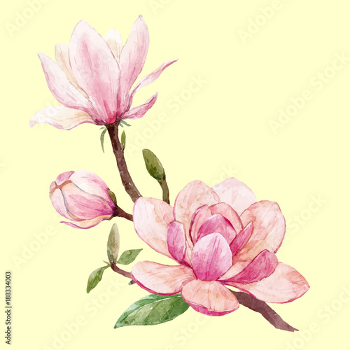 Fototapeta premium Watercolor magnolia floral vector composition
