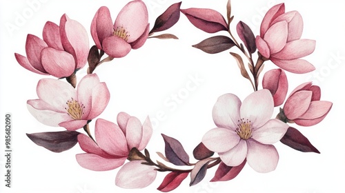 © Phanupong, Naklejka premium Watercolor Magnolia Wreath.