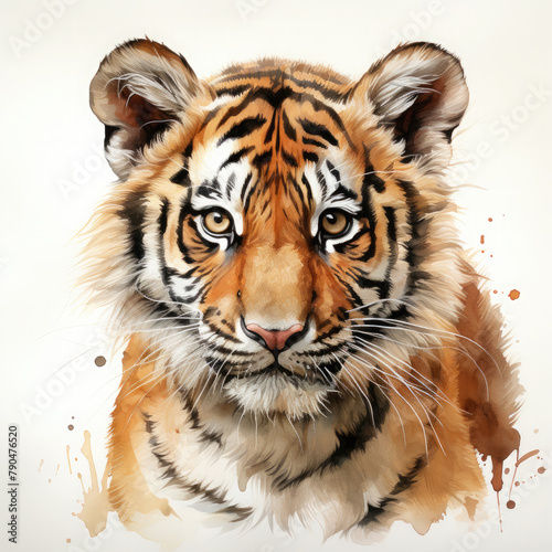 © SantoshArt, Fototapeta premium Watercolor Malayan tiger, clipart Illustration, Generative Ai