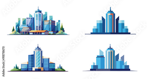 Fototapeta premium Watercolor Modern Building Architecture Isolated on Transparent Background