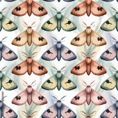 © Jannatul, Fototapeta premium Watercolor moths pattern illustration insect insects