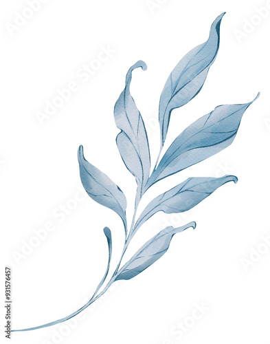 © yuliia lashevska, Fototapeta premium Watercolor navy blue branch