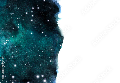 © Khaneeros, Naklejka premium Watercolor night sky background with stars. cosmic layout with space for text.
