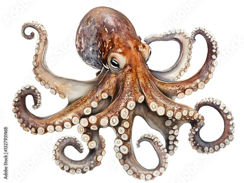 © AhStudio, Obraz premium Watercolor Octopus Illustration with Detailed Tentacles and Textural Painting Style
