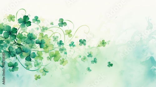 © keystoker, Fototapeta premium Watercolor of a St. Patrick's Day banner with intertwined shamrocks. Green illustration background. Card. Copy space.