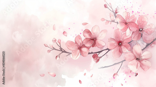 Fototapeta premium Watercolor of cherry blossoms, fluffy and gentle hand-drawn style illustration