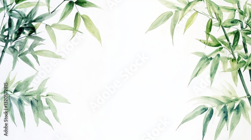 © pornsawan, Naklejka premium Watercolor of Green bamboo forest isolated on white background,hand drawn seamless bamboo pattern,Perfect for wallpapers,web page, surface textures, space for text.