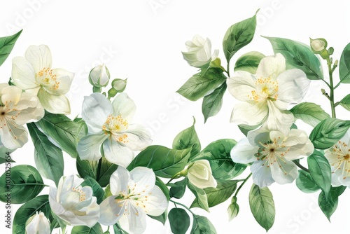 © Andrei, Obraz premium watercolor of jasmine flowers. ai generated