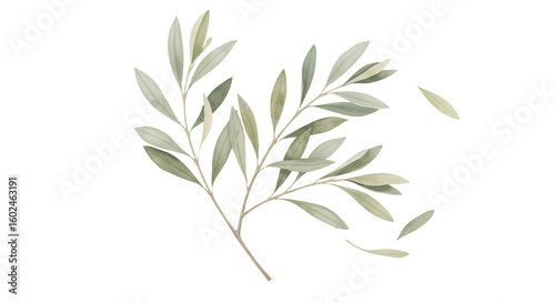 Fototapeta premium Watercolor Olive Branch with Green Leaves Transparent Background