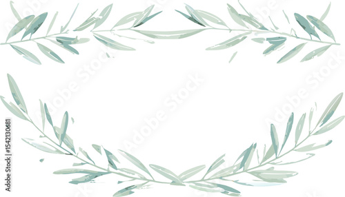 © Hajara, Naklejka premium Watercolor Olive Branches Element with Pastel Green Foliage on White