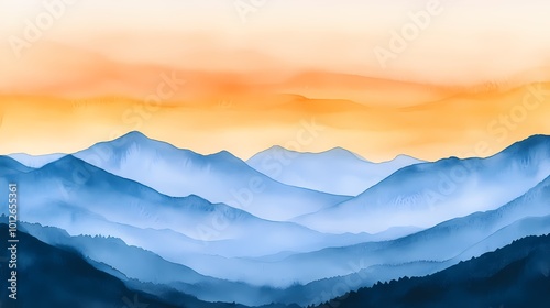 © chujun, Fototapeta premium Watercolor orange blue landscape illustration poster background