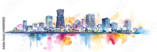 © Brian, Fototapeta premium watercolor osaka japan downtown skyline