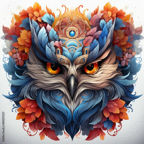 © Shopna Art, Naklejka premium Watercolor Owl Mask for Masquerade Illustration, Generative Ai