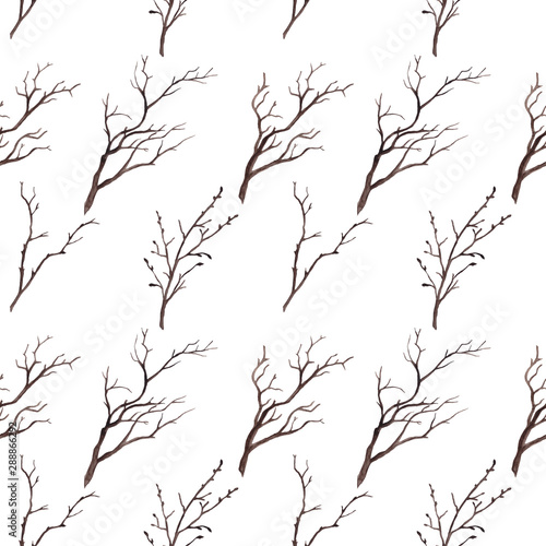 Obraz premium Watercolor paint with autumn and winter branches. Background for textile,...
