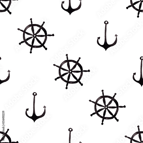© Annykos, Fototapeta premium Watercolor Painted Nautical Seamless Pattern