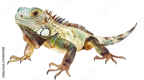 Obraz premium Watercolor painting depicts an iguana with detailed scales and textures