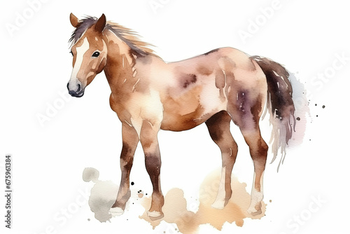 Obraz premium watercolor painting illustration of young beautiful horse isolated on a white background , generative AI