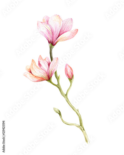 Naklejka premium Watercolor Painting Magnolia blossom flower wallpaper decoration