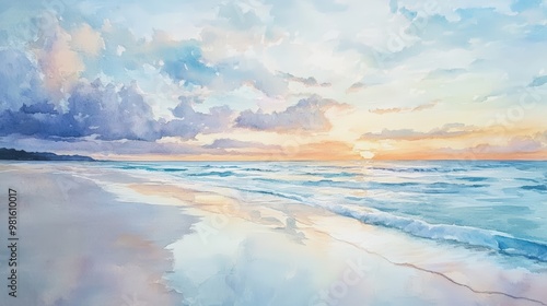 Fototapeta premium Watercolor painting of a beach sunset.