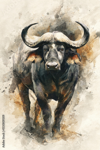 © Clemency, Naklejka premium Watercolor painting of a Cape buffalo