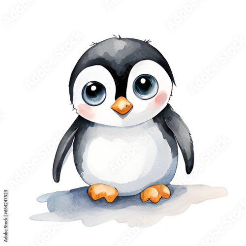 Fototapeta premium Watercolor painting of a cute little baby penguin.