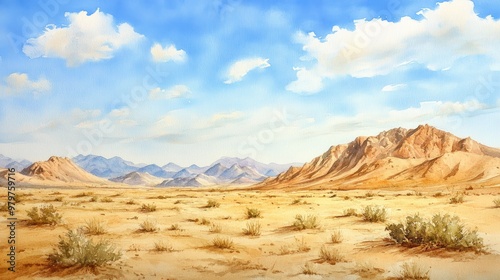 © Ali, Fototapeta premium Watercolor painting of a desert landscape.