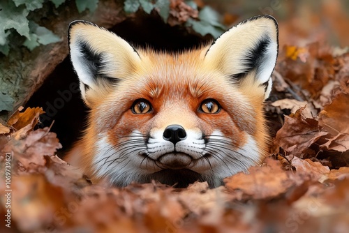 © Sanchai, Naklejka premium Watercolor painting of a red fox in a forest, with soft, blended colors and natural details