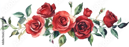 © ddwi, Fototapeta premium Watercolor painting of a red rose bouquet.