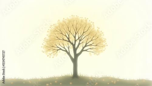 © Jutha, Naklejka premium Watercolor painting of a single tree highlighting its unique silhouette against a soft background concept as Beautiful watercolor depiction of a single tree with a distinct silhouette set against a so