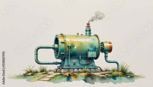 Fototapeta premium Watercolor painting of an antique water pump, rustic charm in vintage style