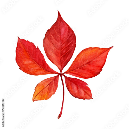 Fototapeta premium Watercolor painting of an autumn maiden grapes leaf on a white background....